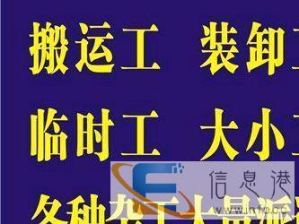 承接:【搬运类套餐】1:搬运装卸等各种临时杂活,搬运装卸车,搬运东西上下楼,重物设备移位,搬运装卸各种物品。我们公司有搬运工、装卸工、临时工,各种杂工等诚竭为您服务。24小时营业,正常半小时左右能到,全城较迟1个小时内能到的速度,我们公司的工人都是身强体壮的年轻小伙子,我们吃苦,肯干,尽心尽力为您服务。2:报价单:时间类:200元/人起步。2小时以内200元/人。4小时以内300元/人。8小时以内400元/人,量大从优。重量类:就地卸货35元/吨.用工老板需注意用工需要付定金给各区域经理,以保证我们工人的稳定.