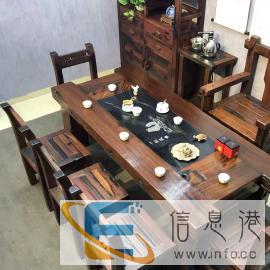 老船木仿古中式小茶桌沉船木茶桌椅组合阳台茶几茶台全实木家具屿洲老船木家具,定制家具,古典家具,实木家具,原生态家具,并专业从事星级酒店、高级会所、特色餐厅、别墅、园林等船木配套,创作**的高档个性化品味空间。船木材料主要有铁力木、石椎木、楸木、坤甸木、檀木、柚木、黄花梨等等,经过海水几十年的浸泡,海浪无数次的冲刷,形成了天然的纹理和防潮、防火、防虫、反腐、耐磨的特性;这样木材打造出来的家具古朴沧桑,被赋予一帆风顺与吉祥的寓意。 工艺以精简为主,抛光以低亮度凸出温润效果,一般线条比较粗犷,尺寸相对也比较大。承继中国古典元素,既融入了明清家具的简约流畅,又呈现出一种返朴、厚重、不对称的原生态风格。作品的体表尽显船木原貌中的伤痕、孔洞、沟壑和沧桑。